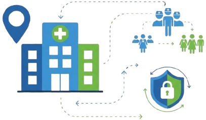 Real-time tracking of patients and staff, emergency location, controlled access to labs and pharmacies.